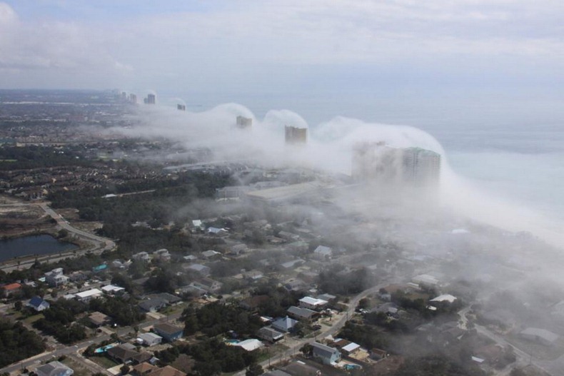 JR hott, seorang pilot hellikopter mendapatkan gambar-gambar menakjubkan yang menunjukkan kumpulan awan rendah menyambar bangunan bertingkat tinggi di tepi pantai Panama kota Florida. Sekilas, tampak seolah-olah  kota tersebut seperti terkena tsunami.